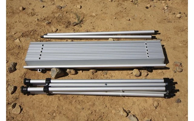 Standfeste und sehr ansprechende Lösung. Trotz des kleinen Packmaßes und des geringen Gewichts hat man einen Tisch, der etwas trägt, eine stabile Oberfläche und genug Beinfreiheit bietet.